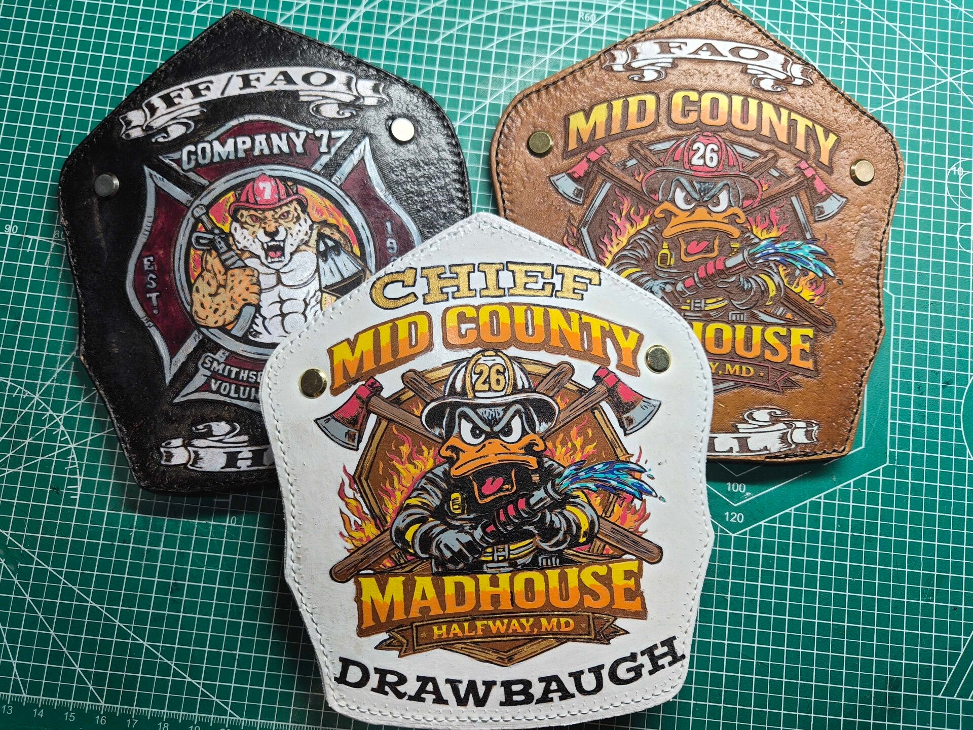 Specializing in Custom Leather Firefighting Helmet Fronts